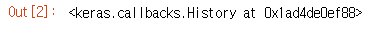 - 아래는 fit() 메서드 실행 시, 실행 결과를 자동으로 출력한 것. => History 클래스 객체를 반환